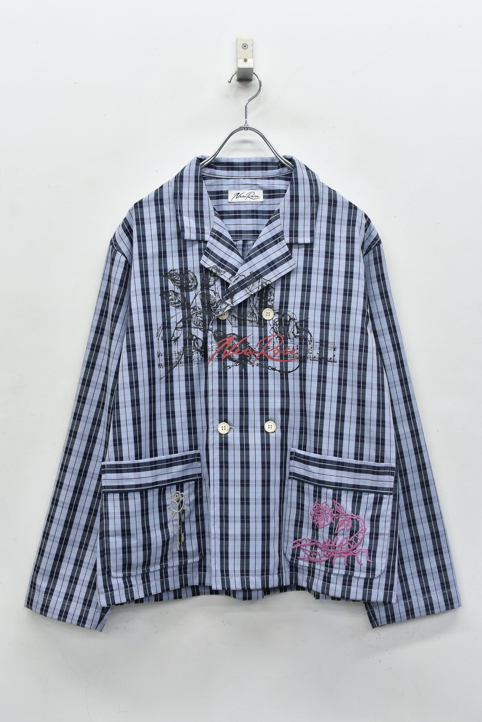 NewRose / Pajama Jacket Embroidery Print - BLUE CHECK