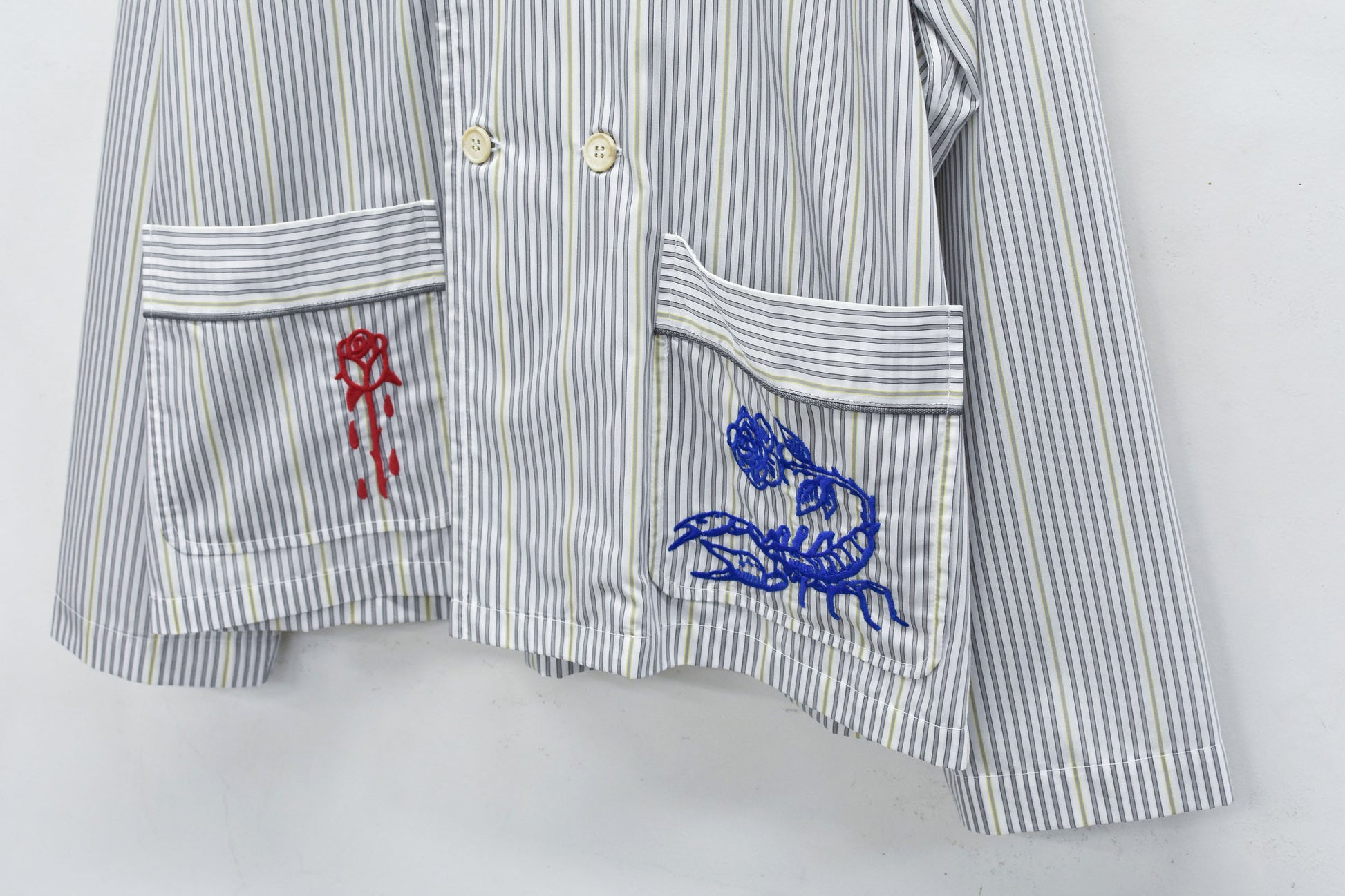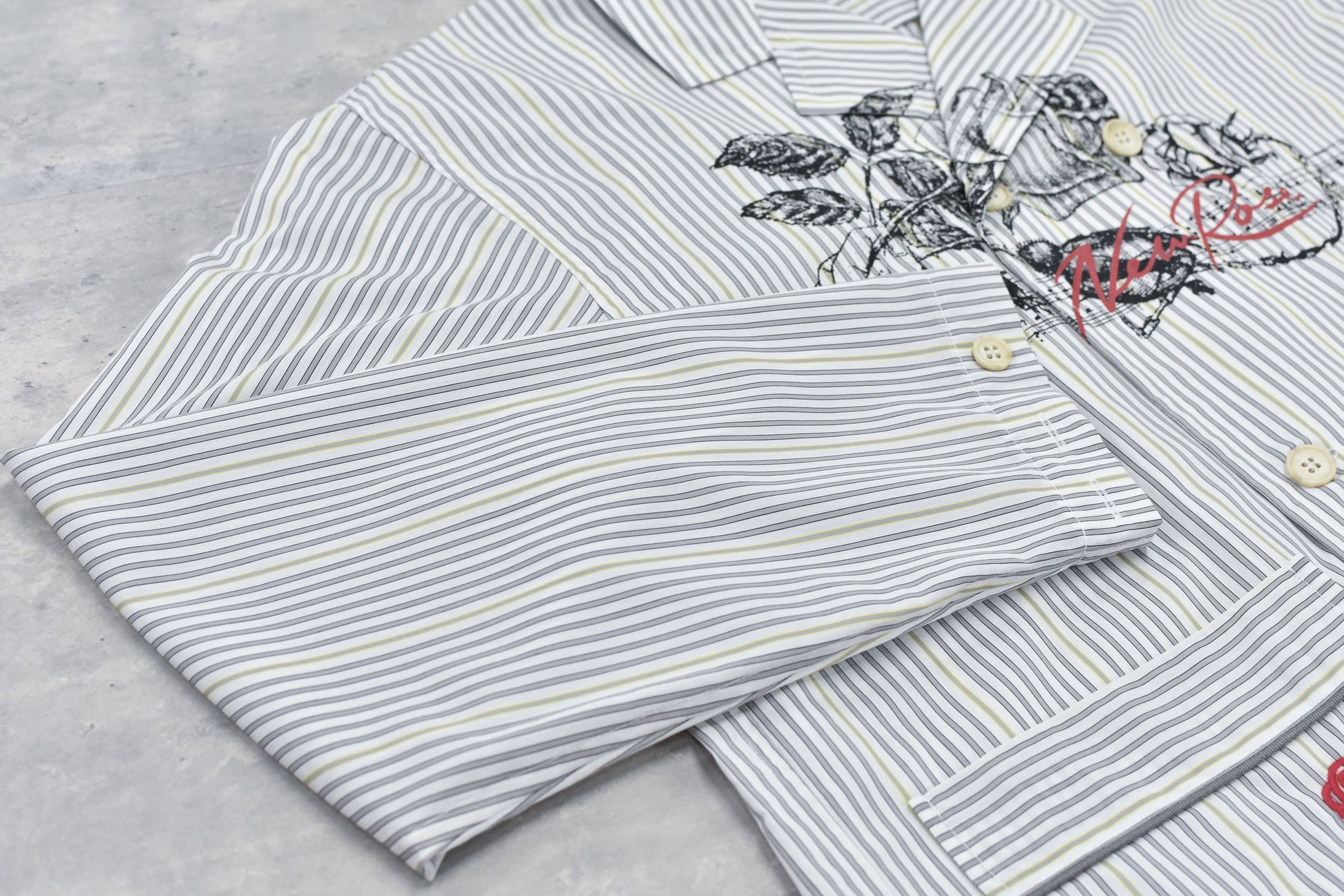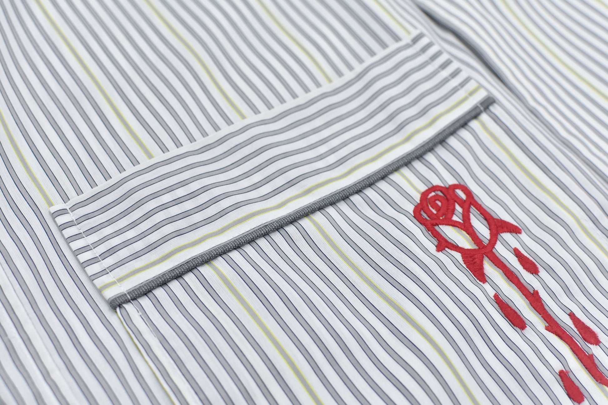 NewRose / Pajama Jacket Embroidery Print - GRAY STRIPE