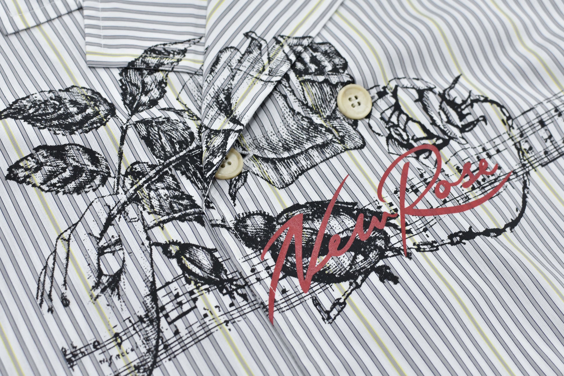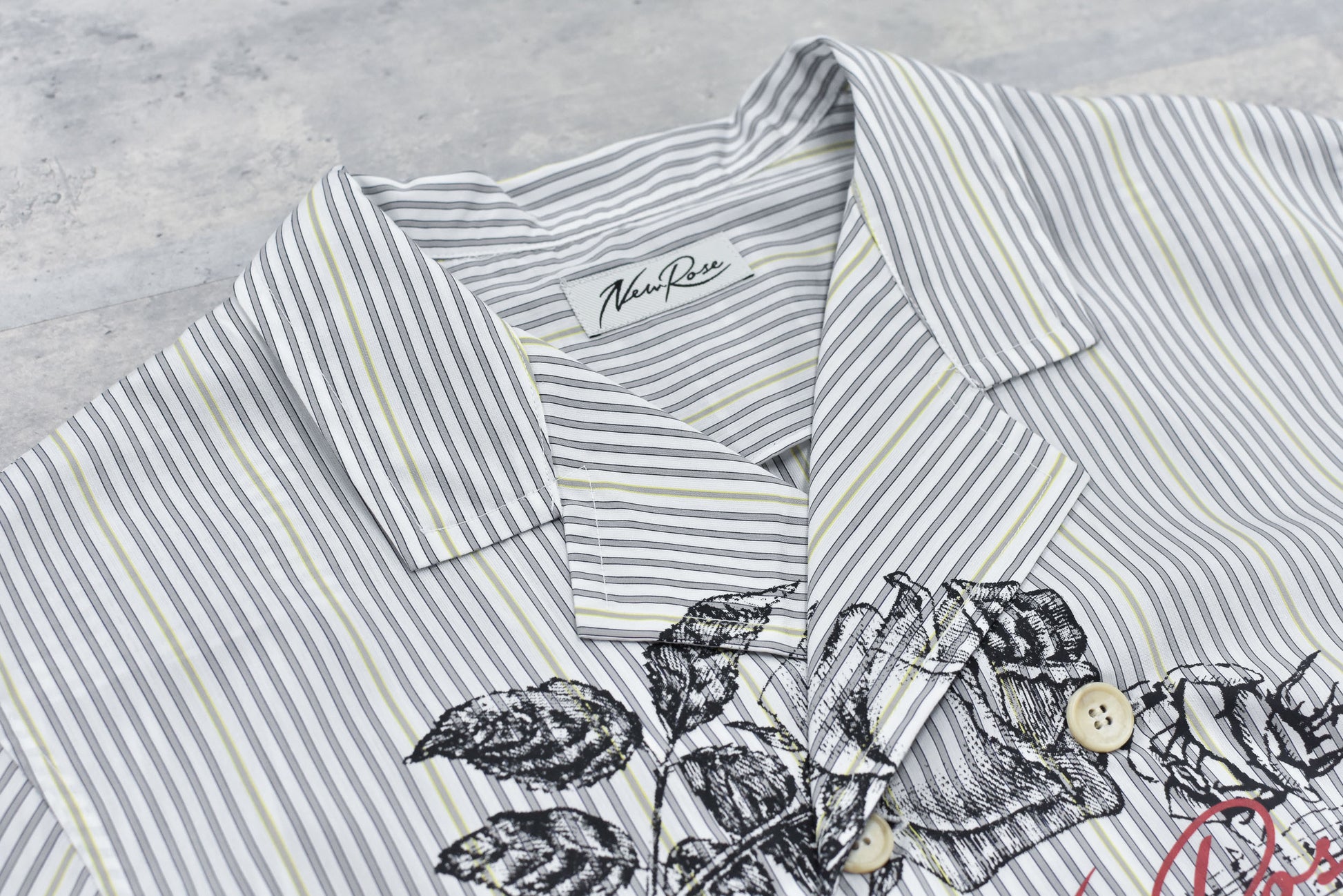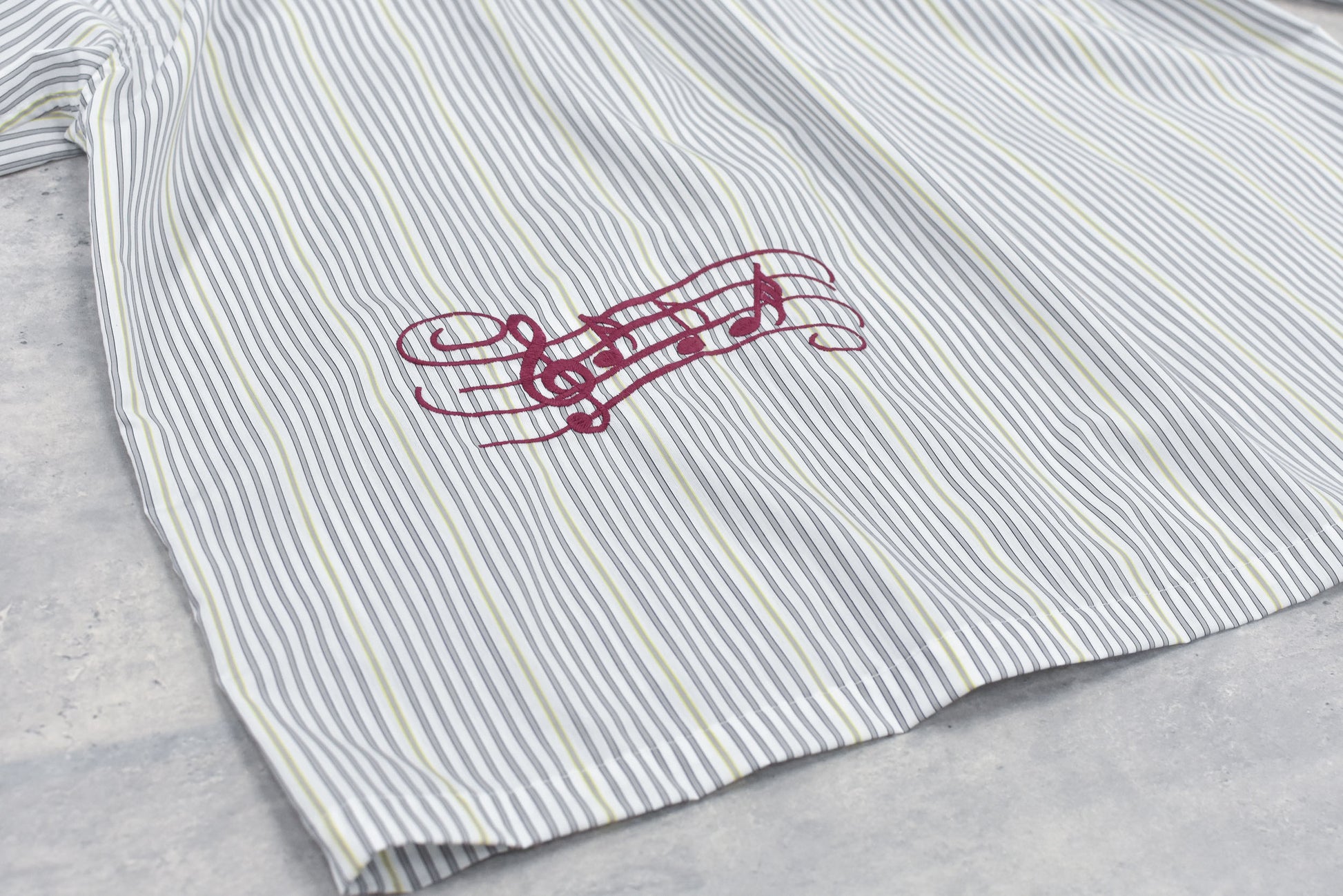 NewRose / Pajama Jacket Embroidery Print - GRAY STRIPE