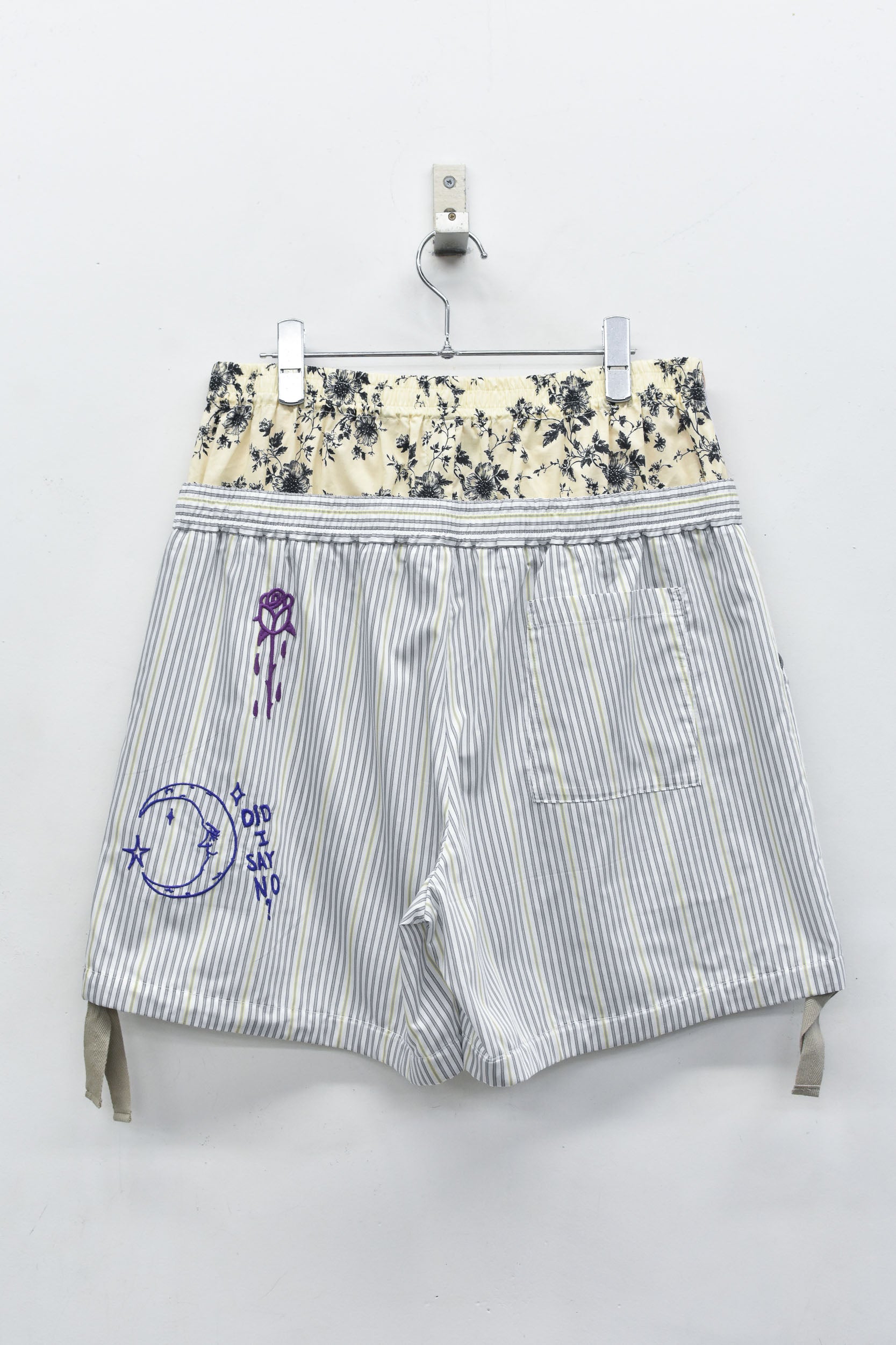 NewRose / Pajama Shorts Embroidery - GRAY STRIPE