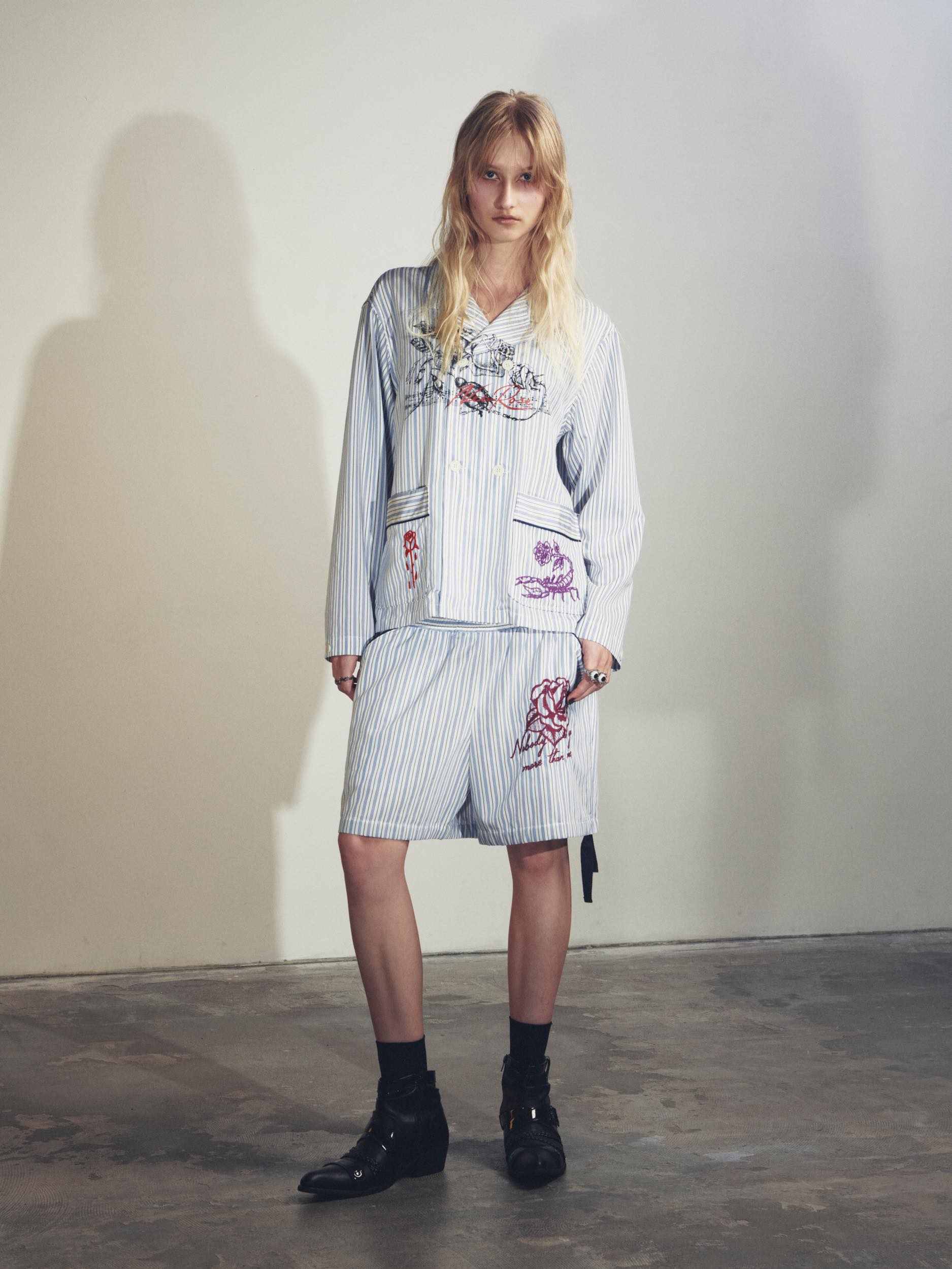 全体に刺繍とプリントのアートワークを加え、より存在感のある一枚に。