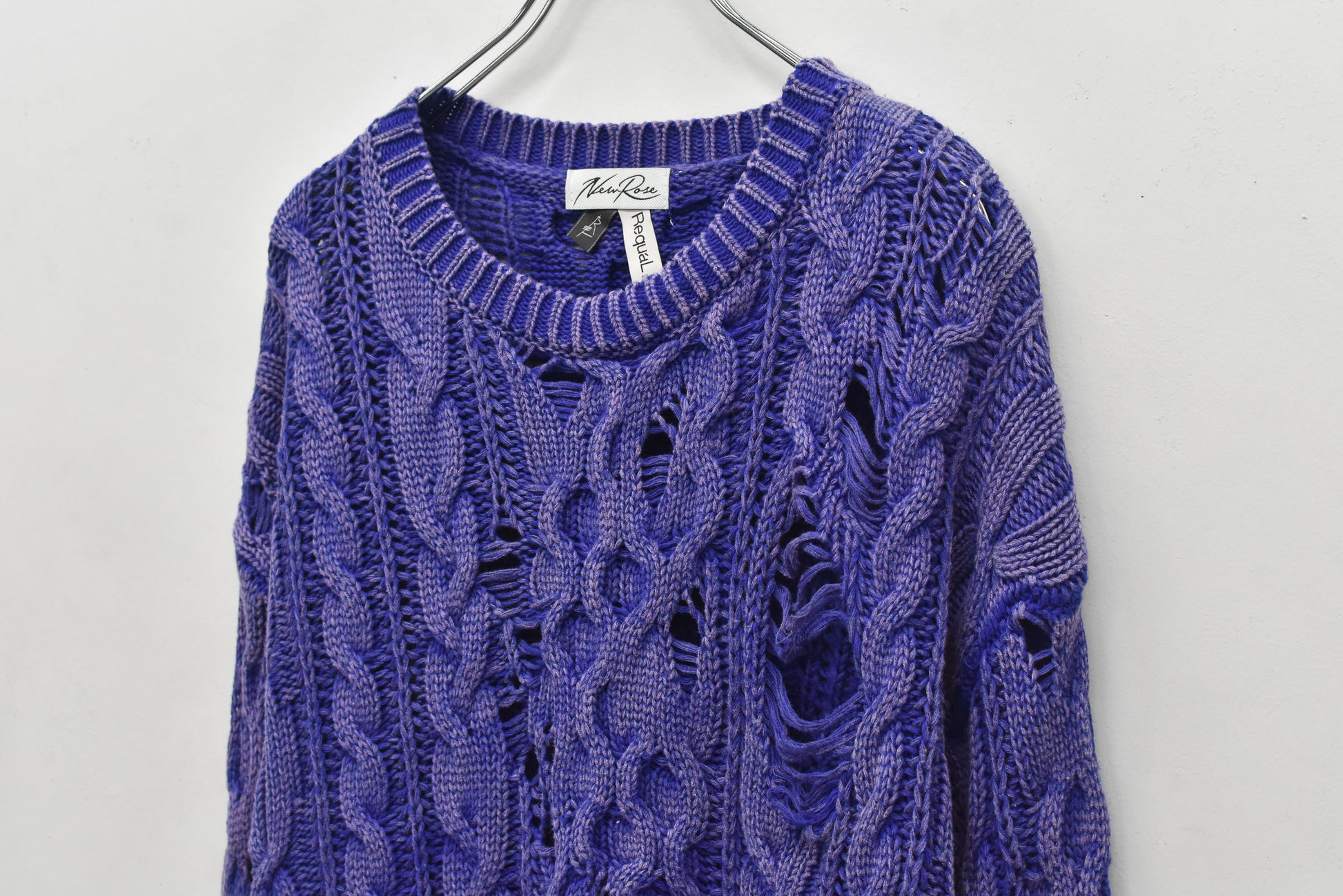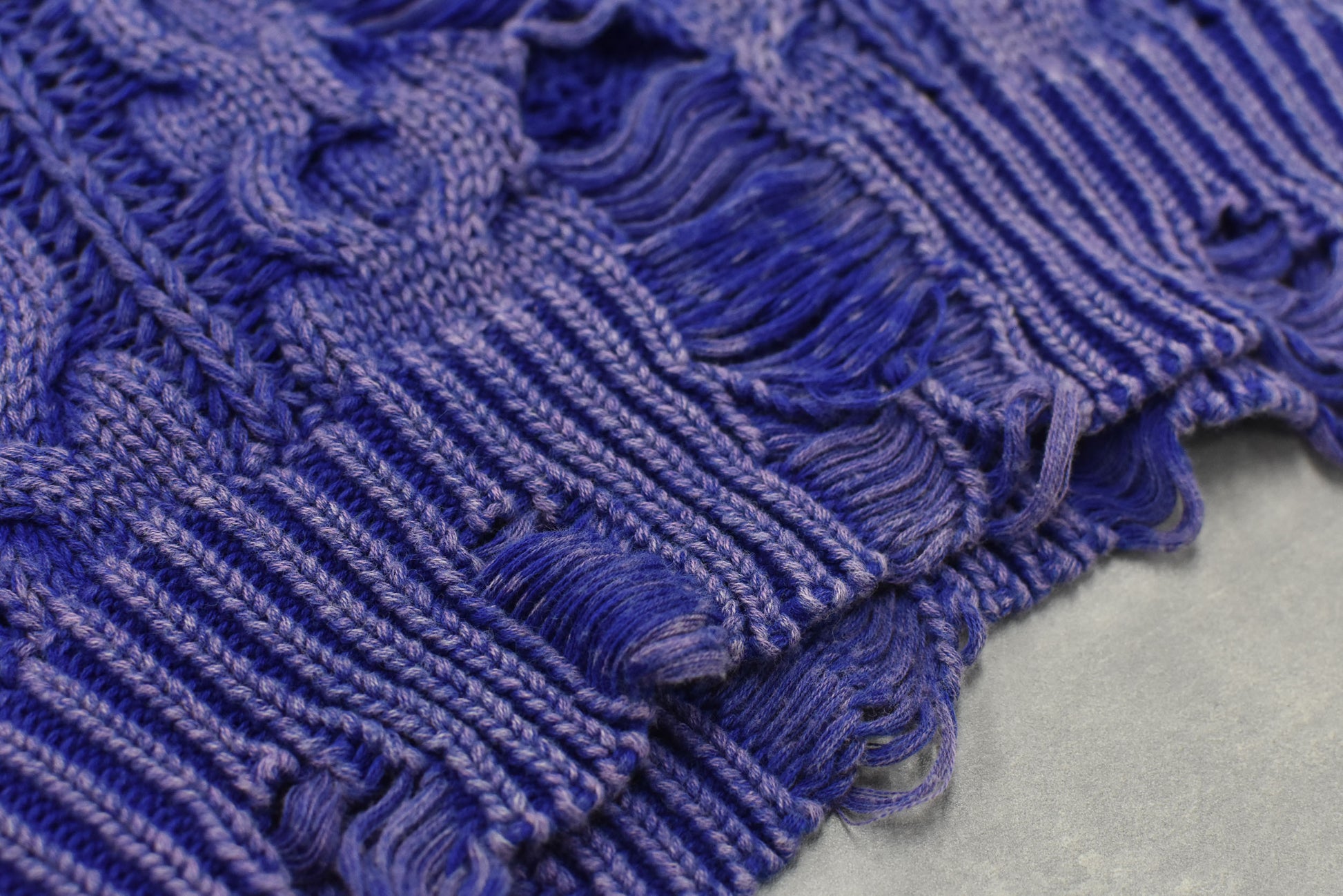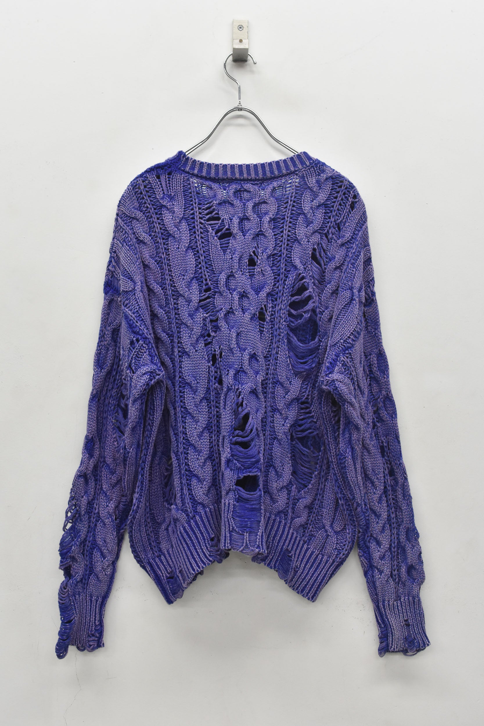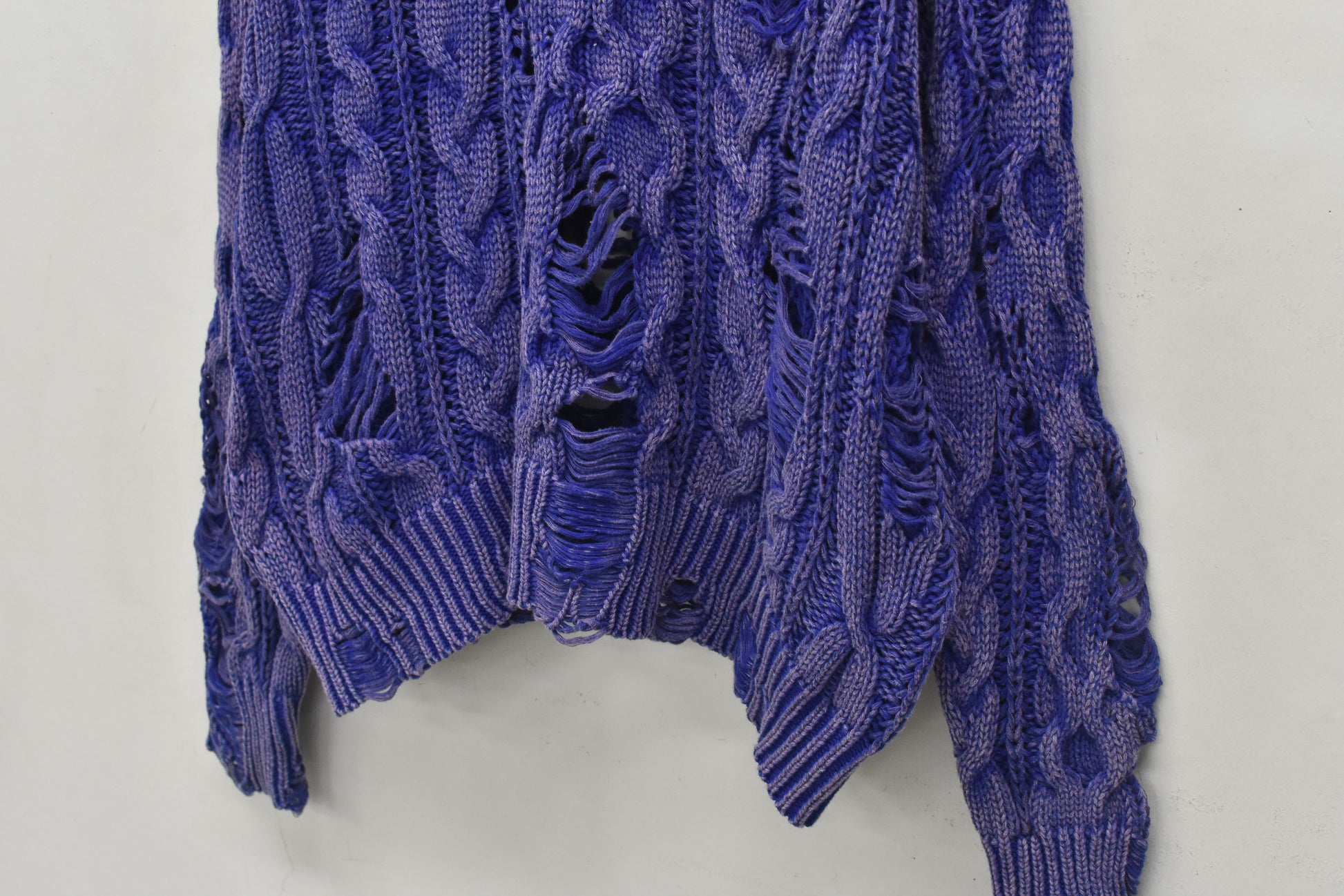 NewRose / Rope Knitting Pigment Destroy Pullover - BLUE