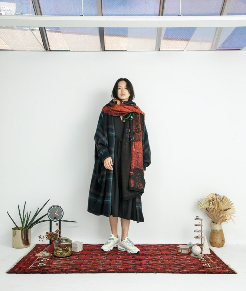 好きな映画のワンシーンを多重露光のように重ね、一目一目編み込み仕立てたニットストール。