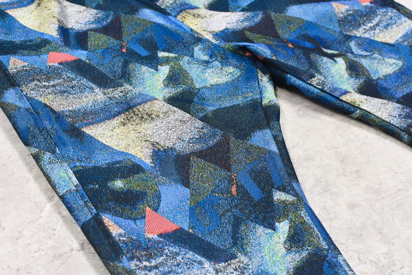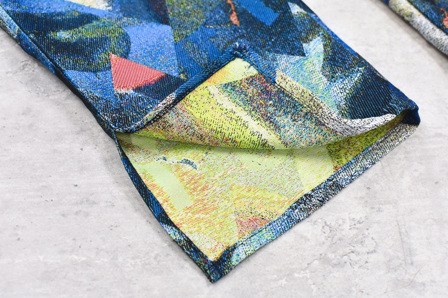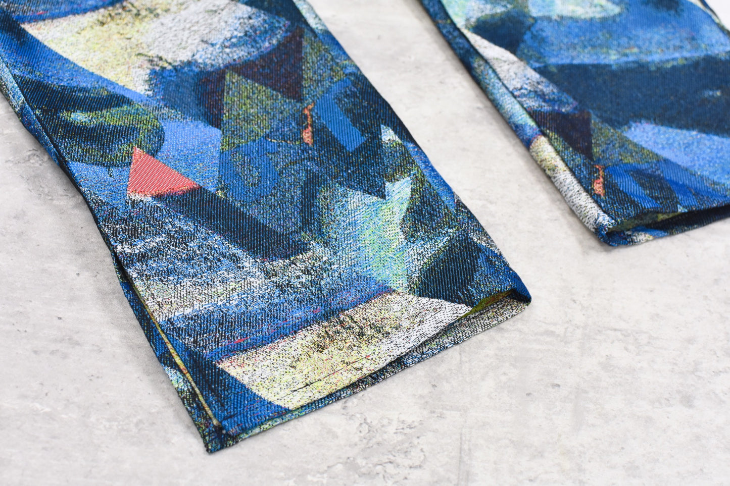 オリジナルのジャガード生地で仕立てたテーパードパンツ。