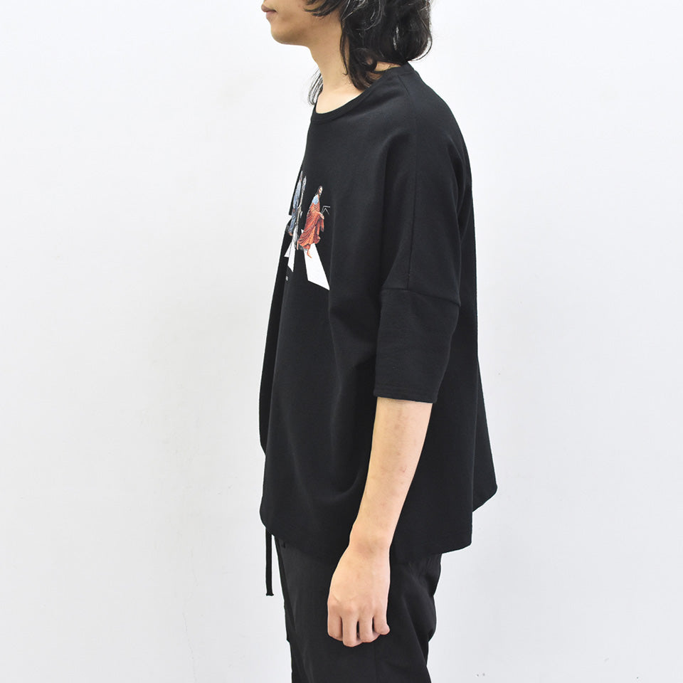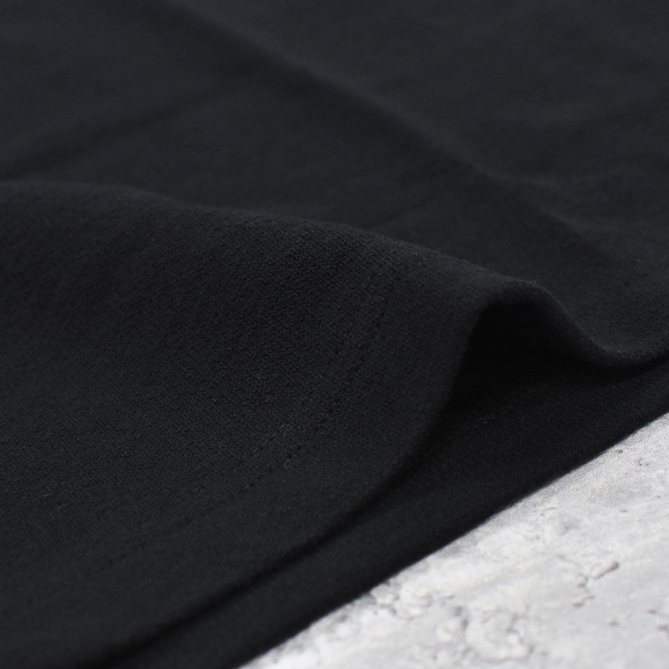 特殊な織りの天竺生地を使用しており、ドライな手触りと肉感のある風合いが特徴です。