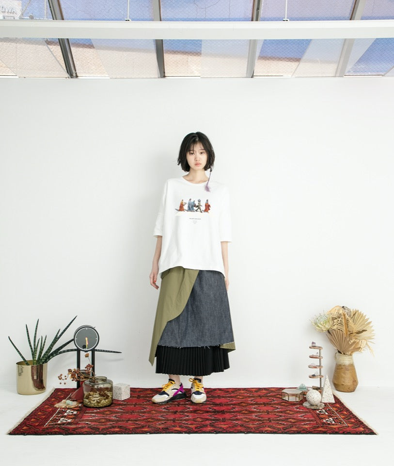 特殊な織りの天竺生地を使用しており、ドライな手触りと肉感のある風合いが特徴です。