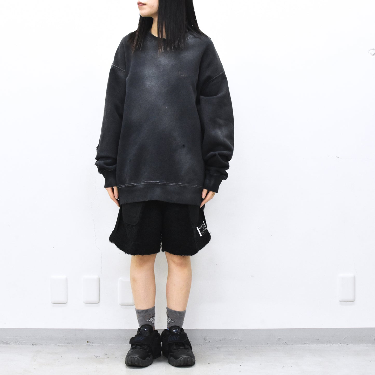 THE JEAN PIERRE / Pigment Grunge Destroy Sweat Shirt - FADE BLK